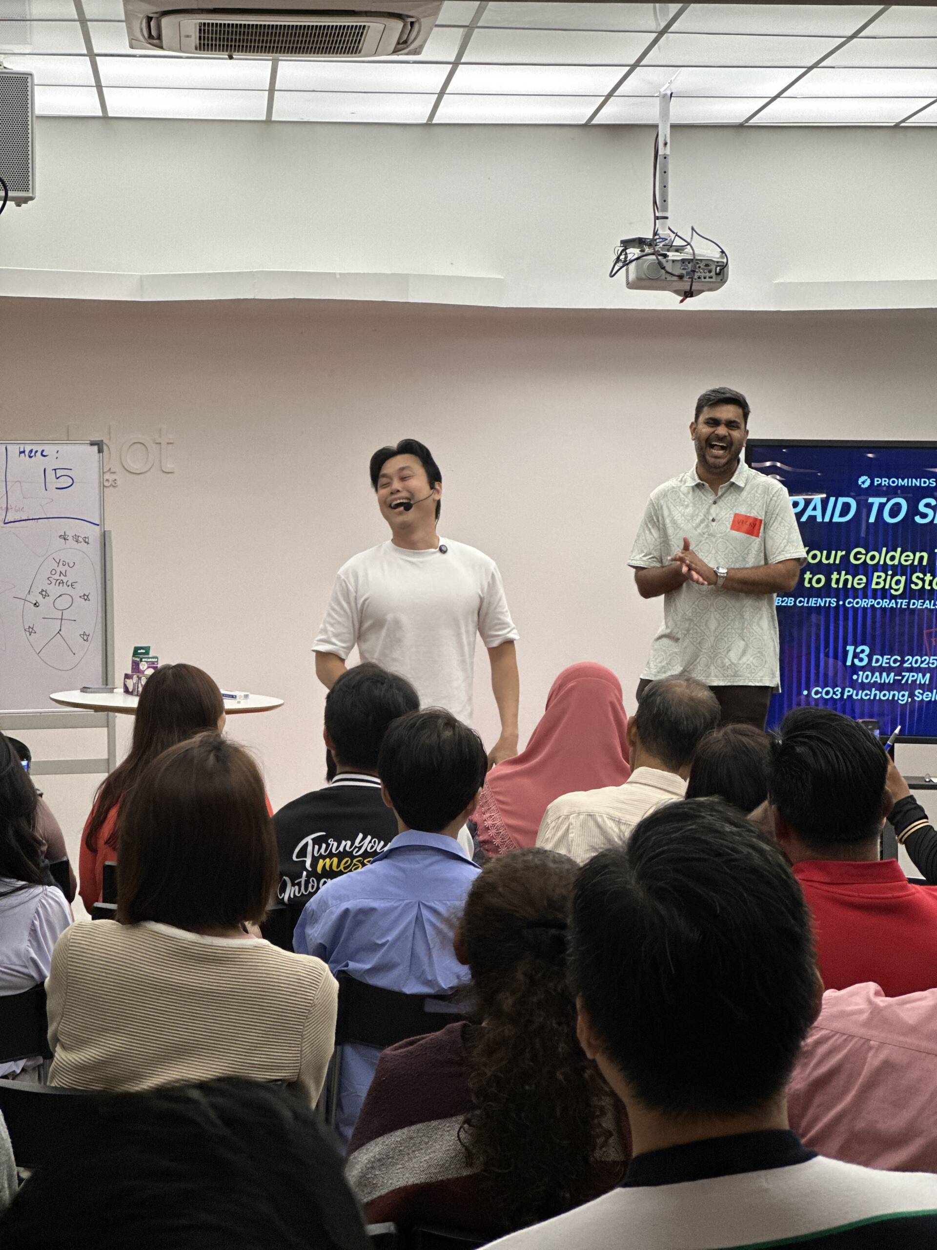 For the first time on one stage, four of Malaysia’s most respected authorities combined their expertise for a comprehensive masterclass. Harith Iskander (The Godfather of Comedy) and David Lai (World-Class Mentalist) focused on the “how” of performance—using humor and psychological triggers to command a room. Complementing the stagecraft, Melvin Soh (9-Figure Webinar Coach) and Michael Teoh (National Youth Icon) broke down the “business” of speaking, teaching attendees how to position their expertise and turn their message into a high-value asset.