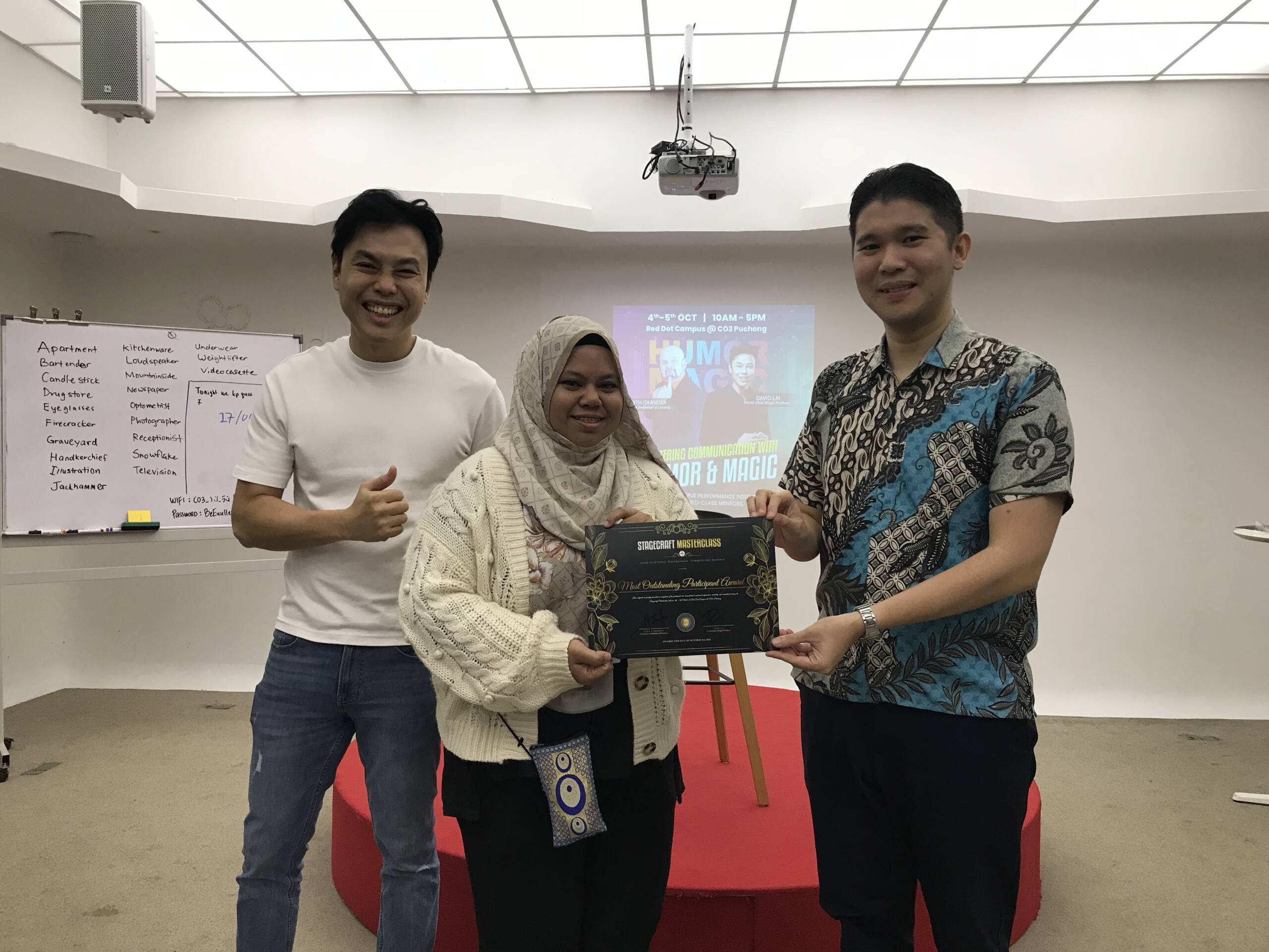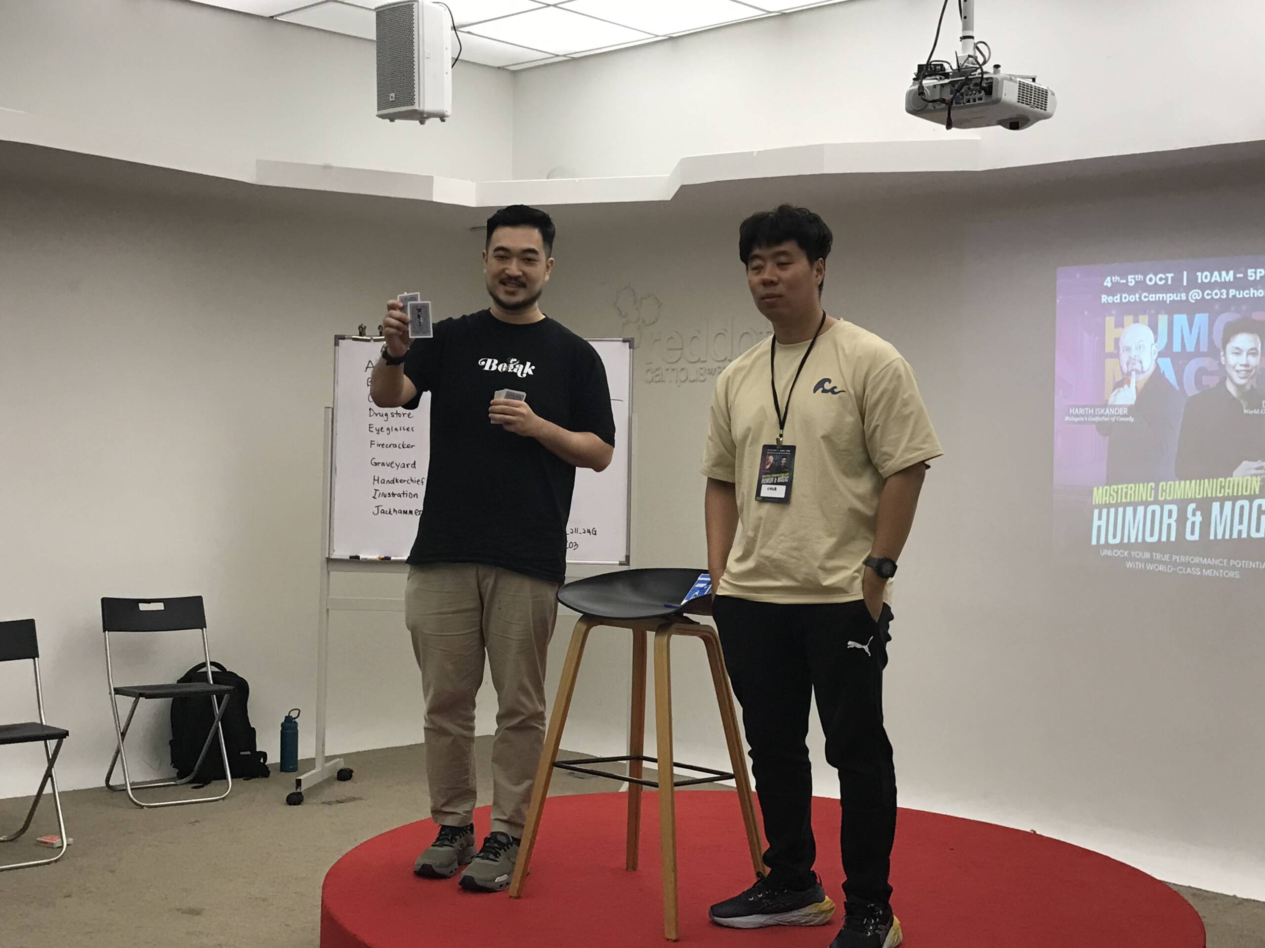 Led by Harith Iskander and David Lai, the 2-day experience emphasized presence over performance, helping participants find their own voice through humor, storytelling, and real-time practice. The sessions were highly interactive, pushing attendees to experiment, receive direct feedback, and refine their delivery with intention and confidence.